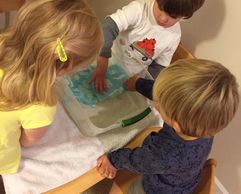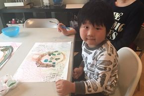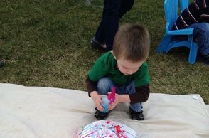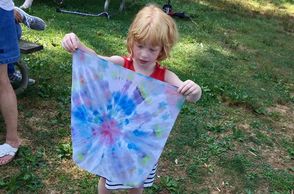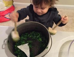 Have you ever dyed cloth by mashing spinach? This two-year old crushed it.