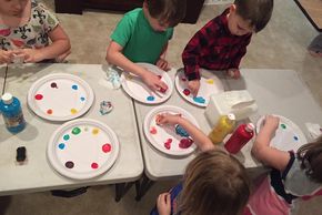 Using only fingers, create a color wheel by mixing neighbor colors. This is finger painting with a purpose!