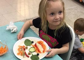 Playing with your food is okay! The more you touch, feel, and become familiar with jicama, spinach, and peppers, the more likely they will be a part of your diet, right?