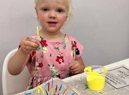 A favorite lesson for all ages, this painting is created with toy cars and trucks. Piet Mondrian would be proud as we learn about primary colors, geometric design, and noisy traffic.