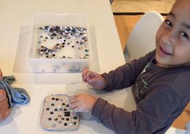What is it about poking shiny rocks and gems into clay? Toddlers and preschoolers just can't get enough of this project.