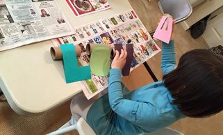 Robert Indiana and his "LOVE" sculptures shows us how letters can make art. Using paper letters and toilet paper tubes, the children strung the letters to spell their names or a word of their choice.